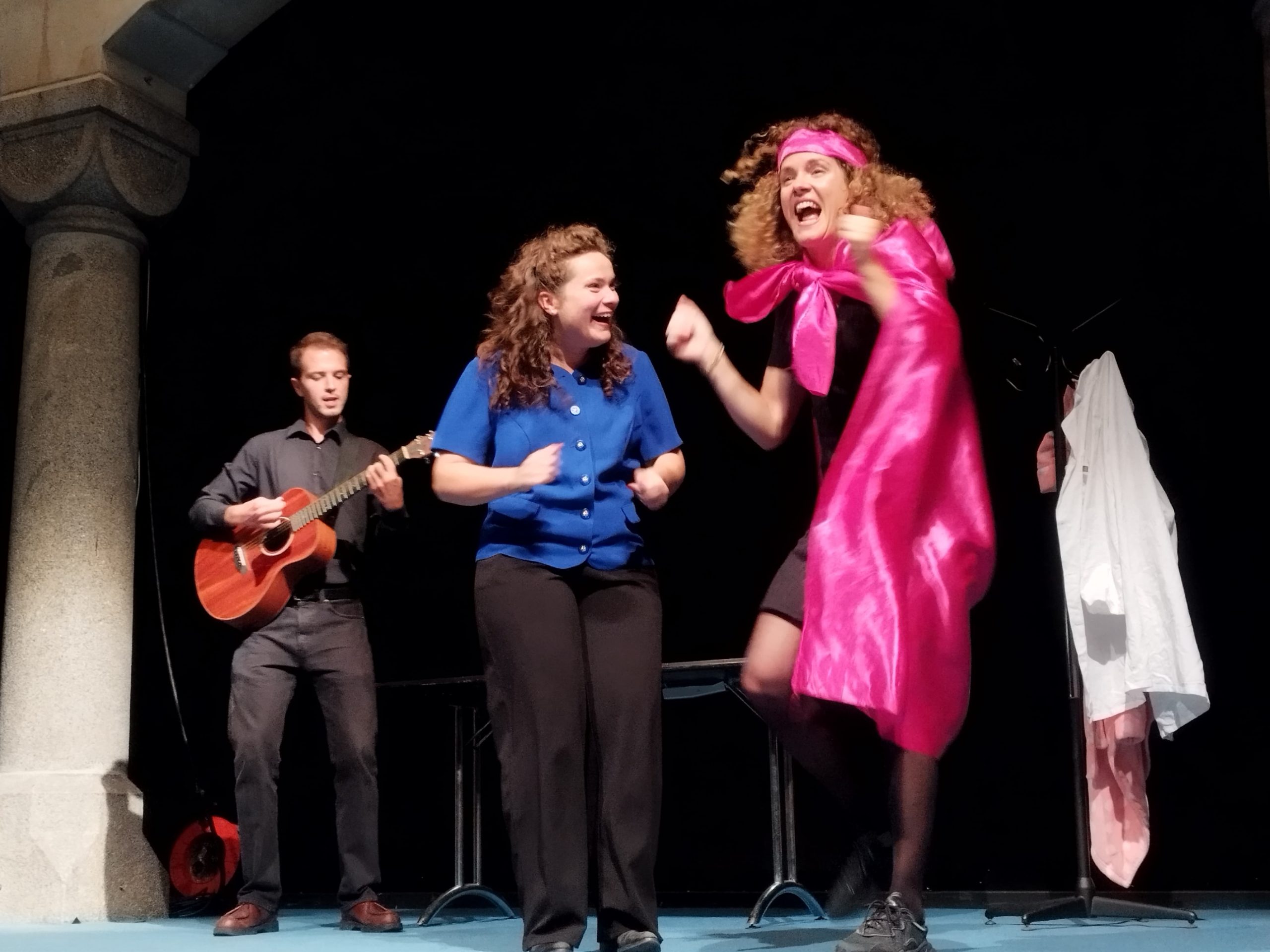 2 comédiennes. L’une qui incarne Dépisto Girl. L’autre, toutes ces femmes que Dépisto Girl va essayer de convaincre. Tout le long du récit, un musicien accompagne les comédiennes en ponctuant l’action de coups de guitare bien aiguisés.